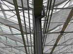Zur Installation kamen hier Lufterhitzer der Firma Gea-Happel. Zusätzliche wurde eine Rinnenheizung an Haken abgehangen.