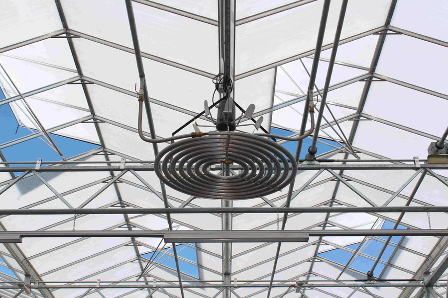 In den Abteilungen Pflanzenhalle und Warmhaus wurde jeweils eine Seitenheizung zur Scheibenabtauung und Nivolair-Lufterhitzer zur Beheizung installiert.