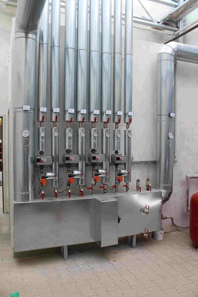 Als Kesselanlage wurde ein 200 kW Pellets-Kesse der Fa. Koeb und ein Niedertemperatur-Kessel der Viessmann mit Erdgasfeuerung 300 kW Leistung eingesetzt.